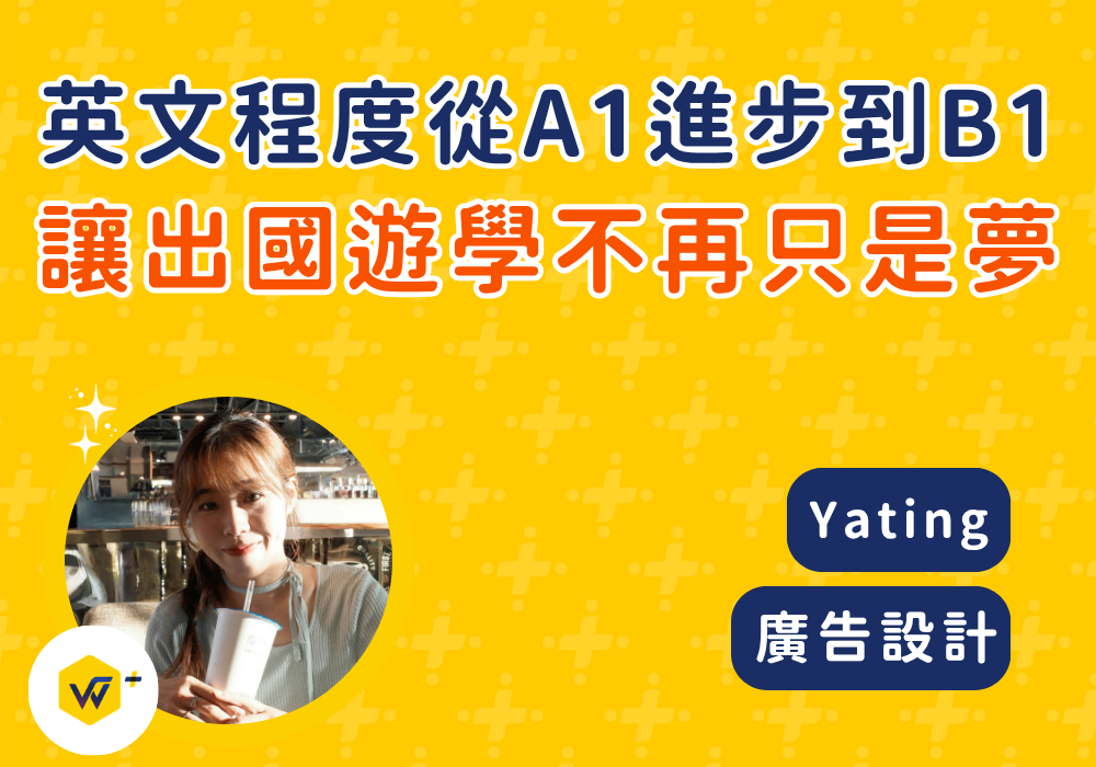 我在生活中會不自覺的講出英文,和老師不斷的練習和輸出,一開始只有A1的程度但現在聽力有B1程度,口說也有自信的說出來,不用害怕講錯。今年也規劃獨自前往英國遊學,希望可以一切順利。也很謝謝Winning Plus老師們的幫忙。